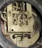 There is good MOP, faded paint, and complete wood backboard on this rare clock, The glass is old and bubbly, and the painted metal dial has small losses, especially near the hinge which probably was resoldered. The movement, stamped with the 1852 patent date, ticks with its dumbbell pendulum, but could use cleaning. See page 194 of Ly's American Clocks Vol.3 for this story. Ht 10 1/2"
