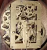 the case retains its original finish, nicely rubbed down with minor veneer flakes on bottom return moldings and a 1 3/4" x 1/4" strip of wood missing from top rear of case. The original ivory door pull is in good condition. There is some touch up on dial. The lower tablet with some flaking. Ht 15 1/2"