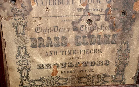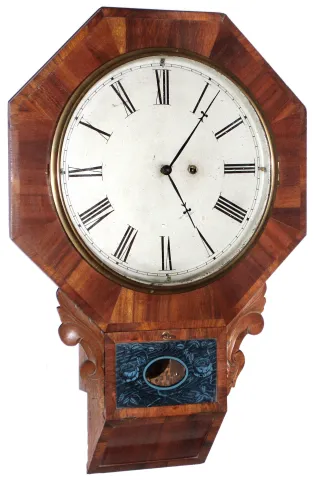 Waterbury Clock Co., Waterbury, Conn., "Drop Octagon" bevel bottom 8 day mahogany timepiece, c1875