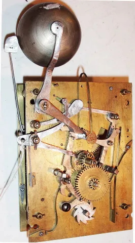 Movement running, strike and repeat function, but will require adjustment to correctly indicate the hours and quarters, dial polished, steel hands missing much of their blue, Ht 7 3/4" to top of dial