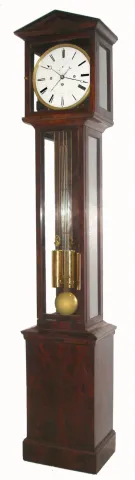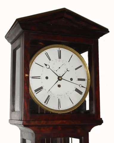 Austrian, floor clock or Bodenstanduhr, now with longer running, 3-wt Grand Sonnerie, with seconds hand and central calendar, the dial signed Johann Nellich in Wien, in a 6- light case of provincial origin, with meter length grid pendulum, c1800