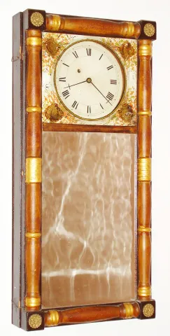 Joseph Chadwick, Boscawen, NH, 8 day, mirror timepiece. Movement stamped no. 3, c1825