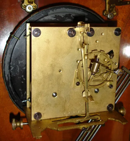 the glass-side case has a good original finish but is missing its crest and finials. The white porcelain dial and beat scale are good, as are the met...