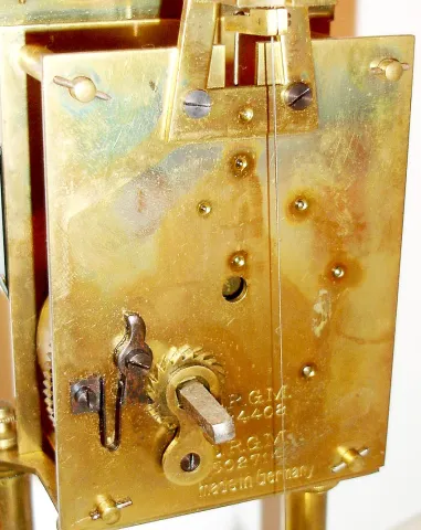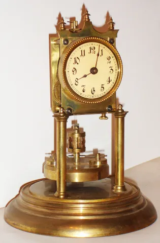 German brass 400 day disk pendulum mantel clock with glass dome, c1910