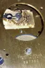 both cases have signed time-only jeweled movements, numbers 387302 and 499197, but both metal dials have newer white stickers with the company name and city. One cast case is heavy and has an old nice patina. The other case is lighter, with vent holes in the bottom, and is stamped "Made in Taiwan" on the back; and its glass is loose in the bezel. Overall diameters 10"