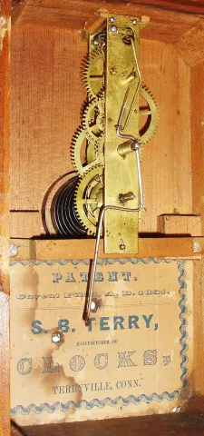 S. B. Terry, 30 hour, cottage timepiece with a ladder type movement, c1851.