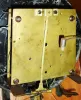 this refinished case, simpler than most, has minor carved ornamentation and just one small side glass porthole, not complete glass side panels. The p...