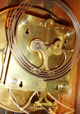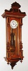 Remember, Germany, walnut, 8 day, time and strike, weight driven Vienna regulator, c1900 this large ornate case, with its burl applied accents, has been nicely polished and is in very good overall condition, with newer glasses and has the usual minor stress cracks at the top of the door. The white porcelain dial and beat scale are fine, the two weights have an old patina on the brass, and the movement is signed and numbered. The pendulum could use polishing. Ht 51"
