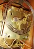this large ornate case, with its burl applied accents, has been nicely polished and is in very good overall condition, with newer glasses and has the usual minor stress cracks at the top of the door. The white porcelain dial and beat scale are fine, the two weights have an old patina on the brass, and the movement is signed and numbered. The pendulum could use polishing. Ht 51"
