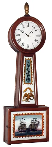 this a well-made full-size clock with nice reverse-paint glasses (lower tablet depicts the U.S.S. Constitution), painted metal dial (2 extra screw ho...