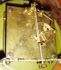 there is a nice old finish on this unusual ornate case, with just minor scuffs. The patterned dial center matches the pendulum bob, and the porcelain chapter ring is fine. The two top finials are replacements. The movement backplate has a "Werner's Original" trademark stamp. Ht