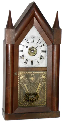 Chauncey Boardman, Bristol, Conn., mahogany triple fusee 30 hour steeple clock, c1850
