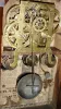 this is the scarcest model with a fusee even for the alarm. There are only minor veneer losses and repairs, the top glass is wavy, and the lower multi-color tablet is very nice. The painted metal dial has flakes only near the screw holes. The inside label is complete but partially stained. Ht 20"
