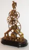 Reproduction modern Asian skeleton timepiece with fusee and oversize great wheel oval glass dome, late 20th century these reproductions look old and authentic, and are interesting to watch when running. This one appears complete, and has its dark-stained wood base that fits the dome correctly. Ht to top of dome 21"