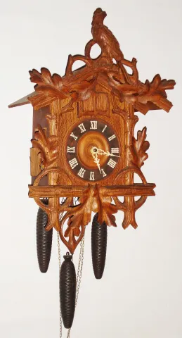 German cuckoo and quail 30 hour quarter-striking three weight wall clock, shown in 1903 Sears catalog.