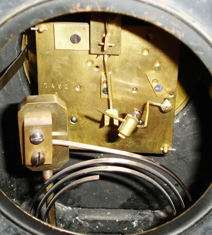 Case very good overall, with some haze on sides and back, one small chip in colored marble, at back left, one chip in front of left column, repaired long ago, the gilt and silvered engraving bright and clean, bronze finials and feet polished to brass, now tarnished, dial very good, minute hand painted gold, movement clean, ticks and strikes, a very nice example. William H. Glenny (1818-1883), a native of Northern Ireland, established a crockery and import business in Buffalo in 1840. In the 1870's he took his sons into the expanded business as W. H. Glenny and Sons and Co. After his death in 1883 his sons ran the business until dissolved in 1898. Ht 19 1/2"