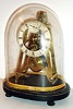 Movement plates good, in old lacquer, with minor scratches, movement needs cleaning, balance broken from hub and reattached with solder, hairspring needs correction, dial with scratching and darkened in some areas, hands replaced, base probably replaced, dome dirty, cracked Ht 12 1/2"