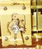 Movement not running, replaced platform, strikes and repeats, a small wedge of brass with three teeth loose inside case, probably from one of the barrels, will require repair and service, case with wear to original gilding, glass panels very good, enamel dial very good, minute hand replaced, Ht 8" to top of handle