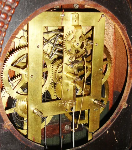 E.N. Welch, late J.C. Brown, Forestville, Conn., 8 day, time and strike ripple molding beehive shelf clock, c1858