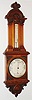 this heavy and beautifully carved instrument has the length and look of an older mercury unit, but the barometer is the later bellows type. The thermometer, indicating two scales, is mercury. Overall condition is very good, with a soft patina on the wood, silvered dials showing just small tarnish areas, and fine beveled glass. Ht 40"