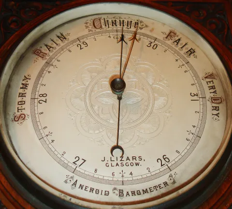 J. Lizars, Glasgow, walnut aneroid barometer and thermometer, c1910