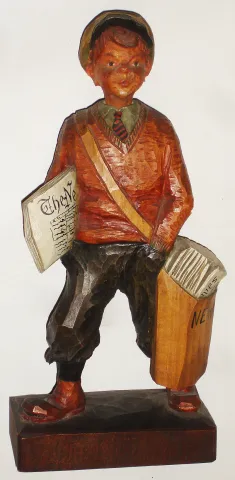 German paper boy carved and painted wood whistler, c1930