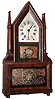 Birge and Fuller, Bristol, Conn., 8 day, time and strike wagon spring steeple on frame with candle finials shelf clock, c1845