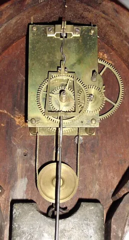 the case has an old gold painted finish, nicely buffed to give an aged look. The tablets are repainted in the proper style. The movement is original...