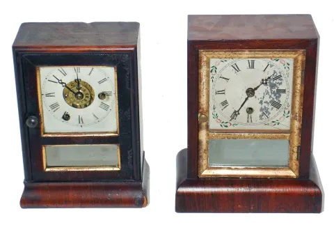 Clocks- 2 (Two): a Gilbert cottage timepiece and a Seth Thomas time and alarm, cottage timepiece, c1865