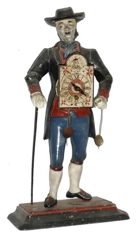 there is some wear and dirt that makes this novelty clock look older than it is, but the details, heavy castings and paint still are nice and worth en...