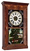 Refinished mahogany and rosewood veneered case in nice condition with a couple tiny chips on the cornice and couple on the bevel edges. Dial has been repainted. Bottom tablet is original with restoration of the border. The top border surrounding the dial has been restored. Hour hand is original. Minute is a replacement. Nice card label inside case. Ht 20.5"