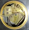 this unusual cabinet-style case has little side shelves, beveled mirrors and cloisonne panels. One rear top corner has been repaired, the old mirrors show some age to the silvering, and the tip of the hour hand is absent. The movement has an unusual rear lever allowing the pendulum to be started from a little square arbor below the 6. Ht 11.5"