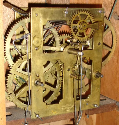 Rosewood veneered and grain painted case in nice condition in original finish. Original painted dial with some repair to the area outside the chapter...