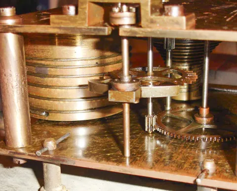 the solid mahogany retains its original finish, the unsigned painted metal dial is very good, and the hands are correct. The movement has a gut cord to the fusee and the original heavy pendulum. One wood retaining peg for the dial assembly is absent (minor issue). Ht 19"