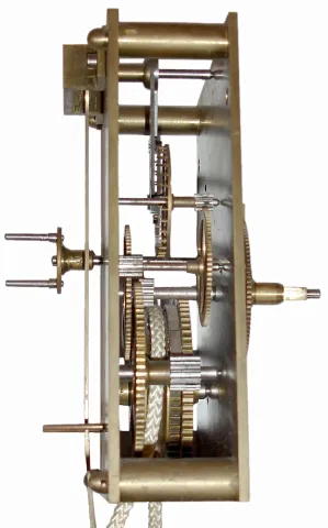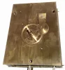 the case has an excellent old finish. The movement is very high quality and signed. The dial has one light hairline. The weight may be a replacement. Ht 89 1/2"