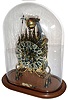 the overall condition is very good, and the engraved plate on the wood base indicates that the maker needed 335 hours to construct this clock from a 310-part kit. The dome has a stable crack on one side. Overall height to top of dome 20"