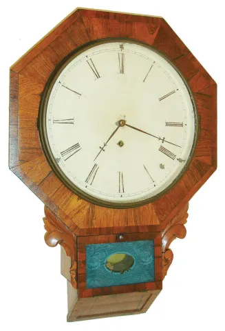 Chauncey Jerome, New Haven, Conn., 8 day, rosewood veneer octagon wall timepiece, c1850