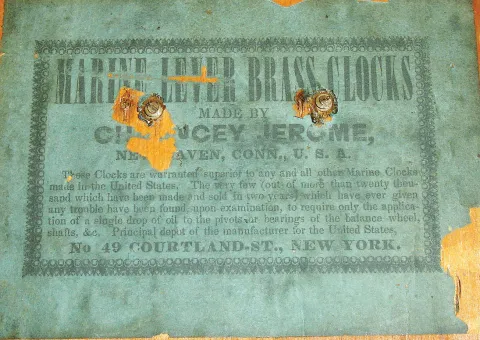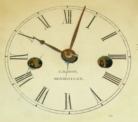 Chauncey Jerome, New Haven, Conn., 8 day, time and strike fusee spring shelf clock, c1850
