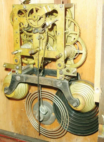 Rosewood veneered case in original finish with a small piece of molding missing on the top right side. Original painted dial has some minor loss at t...