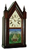 the old finish has darkened but the bold grain still is visible. There is a very good but water stained paper label inside, and the beehive glass has just minor flaking. The painted metal dial looks old, but the hands are mismatched. Ht 20"
