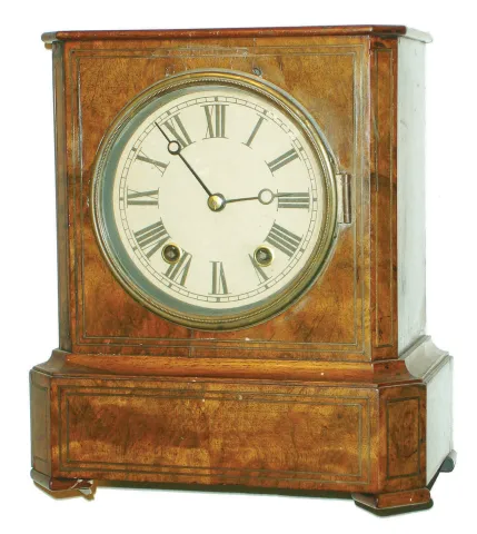 German made for the English market, well figured walnut 8 day time and strike mantel clock, c1870