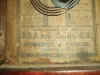 Mahogany veneered case in original finish with some small veneer loss and repairs on the base. Upper door bezel has an age crack. Original painted dial with some minor loss at the mounting screws. Hands are original. Dial glass is cracked. Original decal tablet with some small loss on the bottom. Dark but readable label inside the case. Ht 18.5"