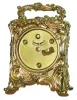 Thomson Meter Co., Brooklyn, N.Y., for Lambert Meter, cast brass time only 30 hour novelty advertising clock, dated 1901 this heavy ornate small case has been nicely polished, the round glass is beveled, and the advertising porcelain dial is pristine, although the hour hand needs to be straightened. An added bonus is the stamp on the bottom indicating "Souvenir of A.W.W.A. Convention, New York, 1901". Winds, ticks and sets. Ht 5.5"