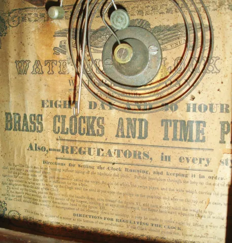 Waterbury Clock Co., Waterbury, Conn., 30 hour time and strike spring brass movement OOG shelf clock, c1860