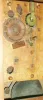 William Beach, Hartford, Conn., 30 hour, time and strike weight wood movement carved columns and cornice top shelf clock. c.1834 Mahogany veneered case in original finish with some veneer damage at the bottom door bottom hinge pin, a couple of minor chips on the cornice top and the left side where it joins the base. Original painted dial with some wear. Tablet glass is not original. Hands are original. Clean label inside the case. Ht 31.5"