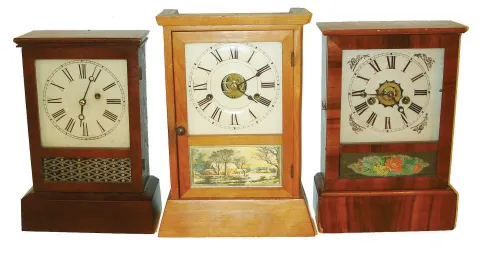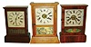 Clocks- 3 (Three) cottage clocks: (1) An E.N. Welch 30 hour time, strike and alarm cottage clock, (2) A Seth Thomas 30 hour time and strike cottage clock (now less veneer) and (3) an unmarked 30 hour cottage timepiece