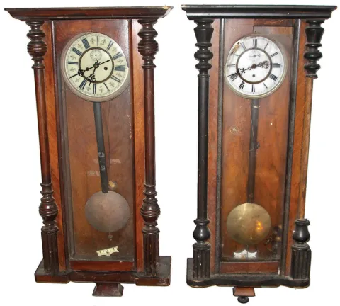 Clocks- 8 (Eight) German wood 8 day wall clocks, late 19th century