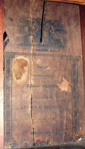 Lucius B. Bradley, Watertown, Conn., 8 day, time and strike weight Salem Bridge movement shelf clock, c1830