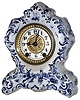 Waterbury Clock Co., Waterbury, Conn., Delft style porcelain 8 day time and strike small mantel clock, c1900