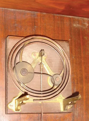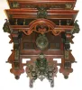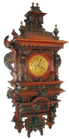 this clock is a Lenzkirch collectors dream. Was imported to the US in 1968 and has been in storage since. Both case and movement are dirty. Note movement mounting sets up on a block to bring dial flush with the door. Sometimes this indicates a marriage, but in this case it was done because of the extra deep case; there is no evidence of tampering. Not immediately evident in the movement are the dozens of decorative bronze castings, since they have all turned dark brown. In spite of having 3 major references on Lenzkirch, we could not find this exact case in a book (send us an email if you know the model) Charts of serial numbers vary quite a bit, but we can safely say that this is 4th quarter of 1800s. Thumbscrews for movement mount are lacking. Some nicks and scrapes to case commensurate with its age. With the many turnings and finial tips in bronze, this is a very heavy clock. We recommend blanket wrap delivery. Ht 52"